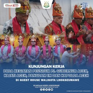 Pada hari Senin tanggal 29 April 2024 pukul 19.30 WIB telah dilaksanakan kegiatan Peusijuk Pj. Gubernur Aceh, Kajati Aceh, Pangdam Iskandar Muda dan Kapolda Aceh bertempat di Guest House Walikota Lhokseumawe.