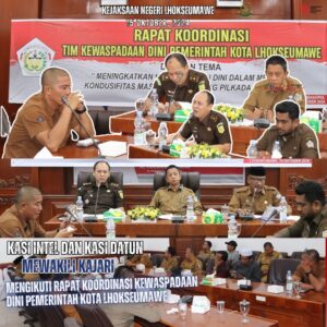 Kepala Kejaksaan Negeri Lhokseumawe diwakili Kepala Seksi Intelijen pada Kejaksaan Negeri Lhokseumawe Therry Gutama, S.H.,M.H dan Kepala Seksi Perdata dan Tata Usaha Negara pada Kejaksaan Negeri Lhokseumawe Arliansyah, S.H.,M.H Sebagai Narasumber dalam Rapat Koordinasi Kewaspadaan Dini Pemerintah Kota Lhokseumawe dengan Tema “Meningkatkan Kewaspadaan Dini dalam Menjaga Kondusifitas Masyarakat Jelang Pilkada Tahun 2024”. Selasa, 15/10/2024