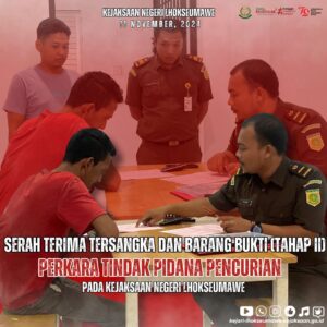 JPU pada Kejaksaan Negeri Lhokseumawe Telah Menerima Tanggungjawab Tersangka dan Barang Bukti (Tahap II) yang melanggar Primair Pasal 363 Ayat (1) Ke-5 Kitab Undang-Undang Hukum Pidana Subsidair Pasal 362 Kitab Undang Undang Hukum PidanaAn.Tersangka Inisial R Terhadap Tersangka Dilakukan Penahanan Di Lapas Kelas II A Lhokseumawe. Senin, 11 November 2024