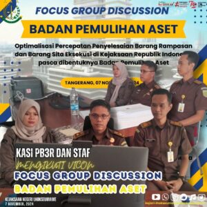 Kasi PB3R pada Kejaksaan Negeri Lhokseumawe Muhammad Syafrizal Amri, S.H mengikuti Vicon Focus Group Discussion Badan Pemulihan Aset terkait Optimalisasi Percepatan Penyelesaian Barang Rampasan dan Barang Sita Eksekusi di Kejaksaan Republik Indonesia Pasca dibentuknya Badan Pemulihan Aset. Kamis, 7/11/2024