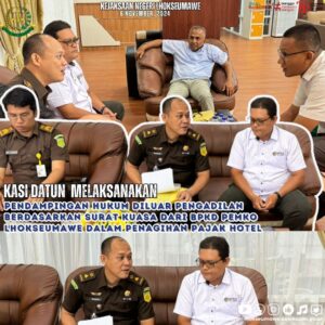 Kasi Datun Pada Kejaksaan Negeri Lhokseumawe Arliansyah, S.H.,M.H melaksanakan Pendampingan Hukum di Luar Pengadilan Berdasarkan Surat Kuasa dari BPKD Pemko Lhokseumawe dalam Penagihan Pajak Hotel Wisma Kuta Karang Lama dan Wisma Kuta Karang Baru. Rabu, 6/11/2024