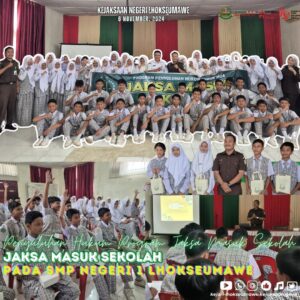 Pelaksanaan Penyuluhan Hukum Program Jaksa Masuk Sekolah pada SMP Negeri 1 Lhokseumawe dengan Tema” Bijak Bermedia Sosial”. Rabu, 6/11/2024