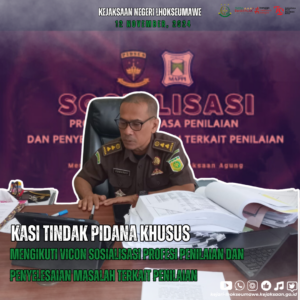 Kasi Tindak Pidana Khusus Bapak Edwardo, S.H., M.H mengikuti Vicon Sosialisasi Profesi Penilaian Dan Penyelesaian Masalah Terkait Penilaian