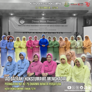 Ikatan Adhyaksa Dharmakrini Daerah Lhokseumawe Menghadiri Peringatan HUT Ke-25 Dharma Wanita Persatuan Kota Lhokseumawe Tahun 2024 Di Hotel Diana Lhokseumawe
