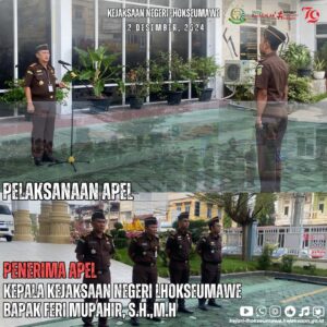 Pada Hari Senin, Tanggal 02 Desember 2024 Kepala Kejaksaan Negeri Lhokseumawe Pada Kejaksaan Negeri Lhokseumawe Bapak Feri Mupahir,S.H.,M.H Menjadi penerima Apel Senin Pagi Yang Diikuti Oleh Seluruh Pegawai Kejaksaan Negeri Lhokseumawe.