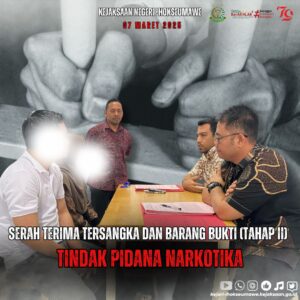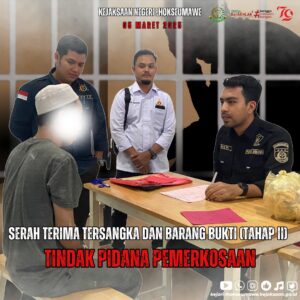 Jaksa Penuntut Umum pada Kejaksaan Negeri Lhokseumawe Abdi Fikri, S.H.,M.H dan M. Andri Ghafary, S.H Telah Menerima Tanggungjawab Tersangka dan Barang Bukti (Tahap II) yang melanggar Kesatu Pasal 114 ayat (2) Undang-undang Republik Indonesia Nomor 35 2009 Tentang Narkotika Atau Kedua Pasal 112 ayat (2) Undang-undang Republik Indonesia Nomor 35 Tahun 2009 Tentang Narkotika An.Tersangka Inisial AZ dan MR Terhadap Tersangka Dilakukan Penahanan Di Lapas Kelas II A Lhokseumawe. Jum’at, 7 Maret 2025.