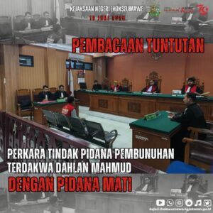 Lhokseumawe, Rabu 18 juni 2025 Jaksa Penuntut Umum (JPU) Kejari Lhokseumawe membacakan Tuntutan pidana MATI terhadap terdakwa penyiraman air keras pada sidang yang digelar di ruang sidang Garuda Pengadilan Negeri Lhokseumawe. Kota Lhokseumawe.