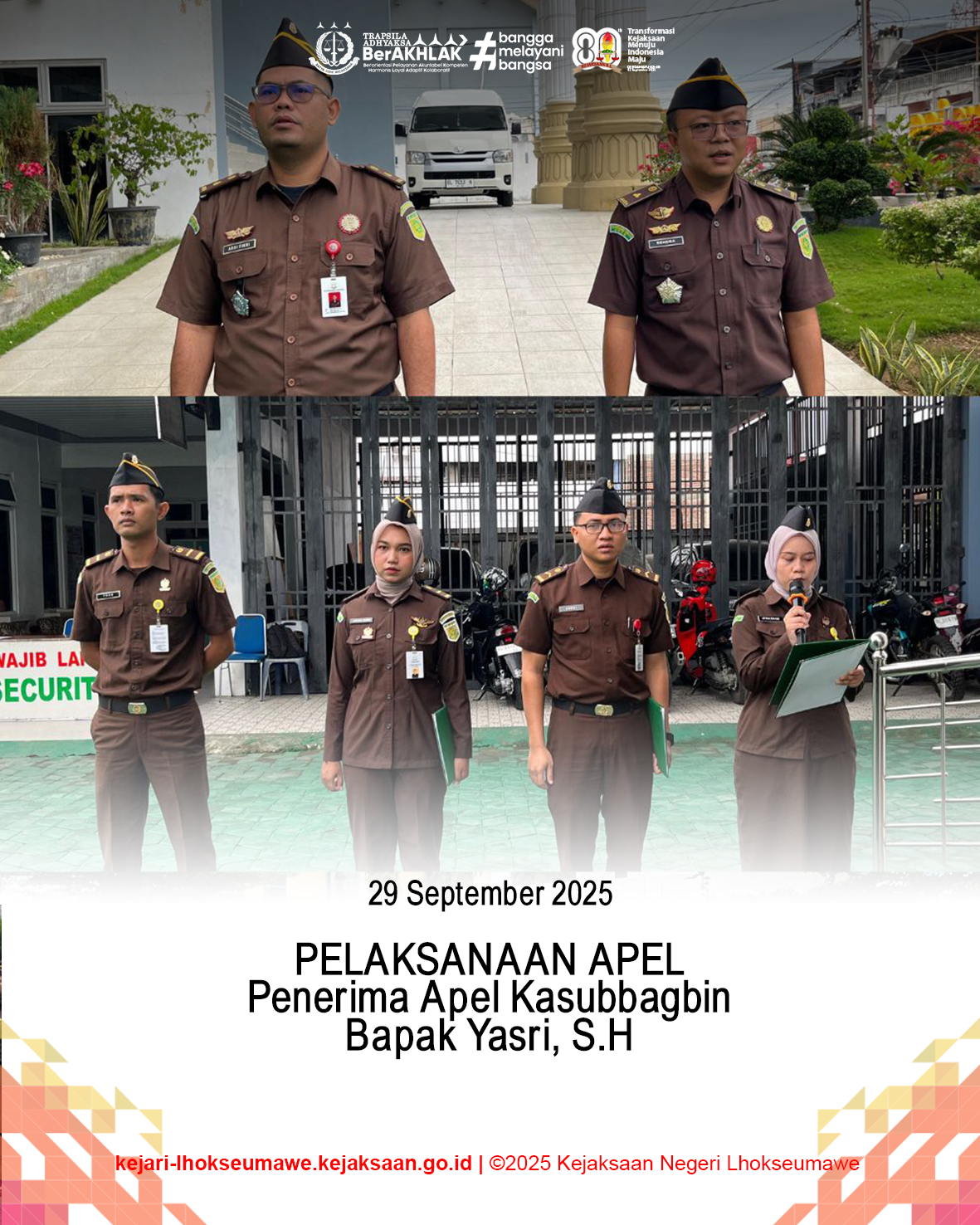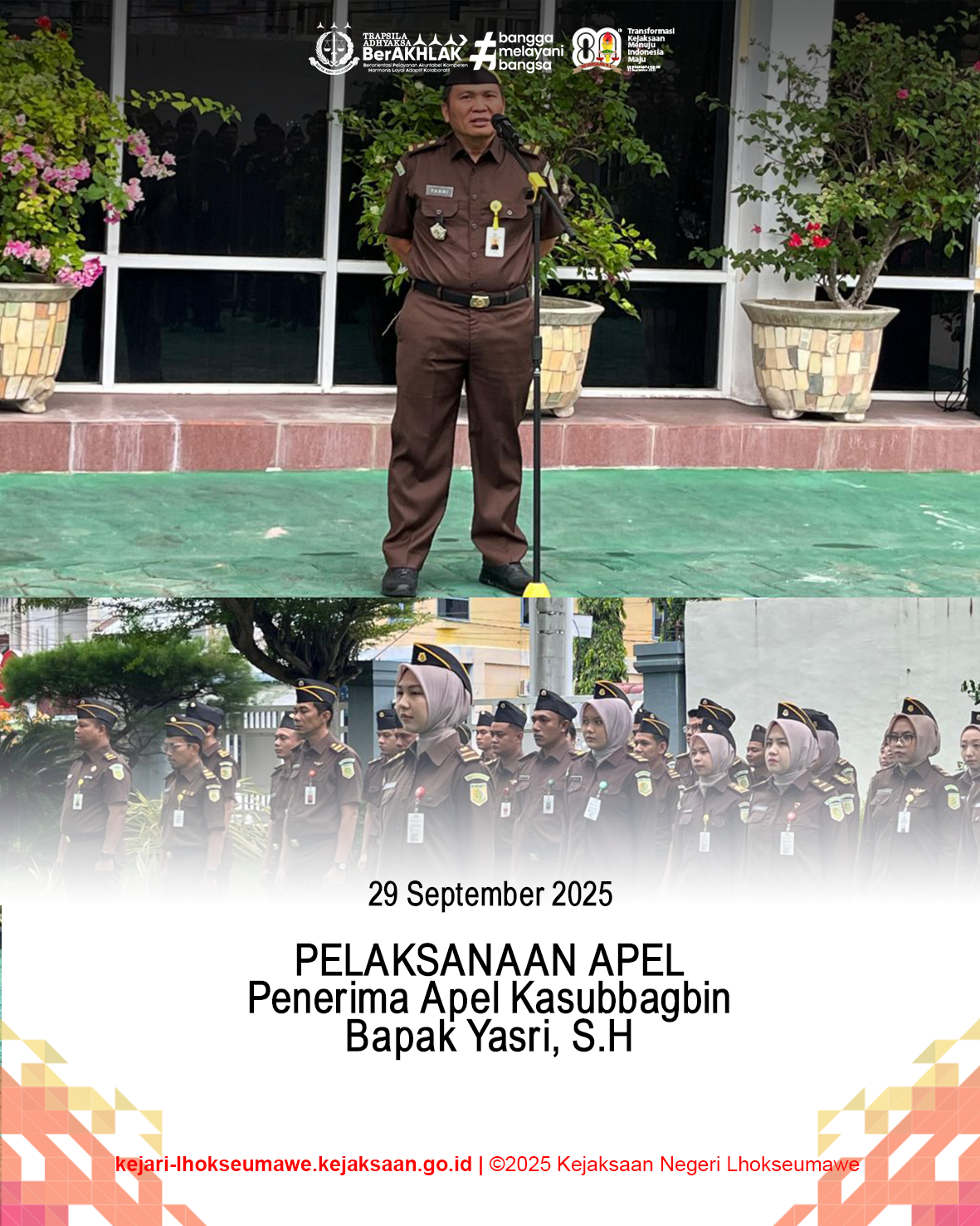 Dalam arahannya, Kepala Kejati Aceh menekankan pentingnya komitmen, konsistensi, dan sinergi antar seluruh pegawai dalam mewujudkan Kejaksaan sebagai institusi yang profesional, bersih, dan transparan, sehingga mampu memberikan pelayanan terbaik kepada masyarakat.